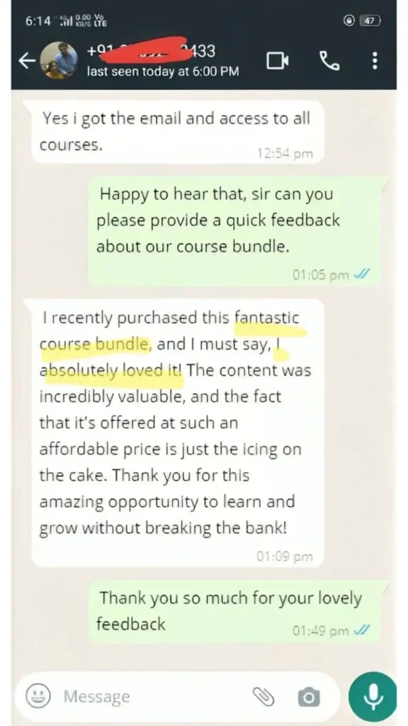 We’ve got you covered! You’ll receive customer support to assist with any queries about the bundle or your learning journey. Email :- shamsul3m@gmail.com Whatsapp :- +91 72755 33616